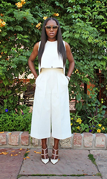 Ca sa obtii un efect actual, tipic verii 2015, mergi din nou pe mana uniformitatii si asorteaza-ti pantalonii culottes cu topul. Completeaza tinuta cu niste sandale cu toc, in nuante nude sau in marouri calde, pentru a da stabilitate look-ului tau. In acelasi sens, al echilibrului cromatic, tinutele de seara cu pantaloni culottes all white si pastelurile delicate se incadreaza perfect in tabloul unei veri boeme.
