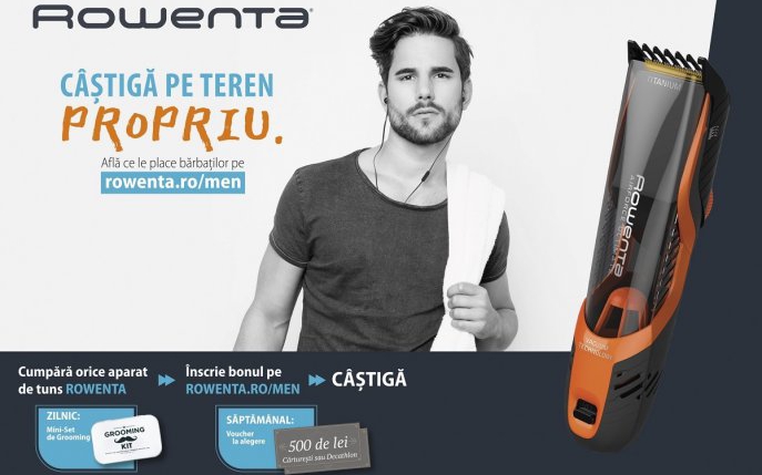 Summer is not over yet! Până pe 31 August, Rowenta te înscrie în cursa pentru premii pe gustul unui gentleman adevărat! J Ce trebuie să faci? Cumpără orice aparat de tuns Rowenta, înregistrează bonul pe www.rowenta.ro/men și poți câștiga zilnic un kit de grooming sau săptămânal un voucher de 500 de lei pe care să-l folosești la Cărturești sau Decathlon.