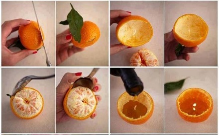 Pentru acest odorizant de camera nu ai nevoie decat de o portocala si niste ulei. Uleiul poate fi orice ulei ai prin casa sau unul aromat, daca esti pasionata de varii arome. Astfel, tot ce trebuie sa faci este sa tai portocala pe jumatate, sa ii scobesti continutul cu grija, astfel incat sa nu distrugi coaja si sa umpli recipientul obtinut 2/3 cu ulei. Adauga apoi continutul de portocala, taiat in bucatele si lasa totul o ora la marinat. Dupa acest timp, poti sa aprinzi lumanarea ta parfumata si sa intri intr-o stare cat mai zen.