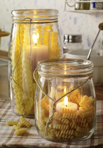 O cina romantica trebuie sa aiba toate ingredientele: mancare delicioasa, atmosfera speciala si lumanari homemade. Un simplu borcan cu paste sau o coaja de anghinare pot deveni suporturi ideale, in acest caz.