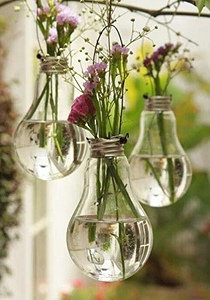 Sticlele vechi decorate cu sfoara colorata dupa modelul vazei din metal sau becurile pot fi optiuni demne de luat in seama pentru un decor homemade.