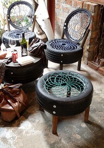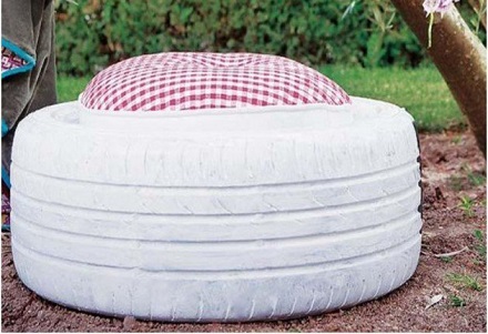 Taburet de gradina din roata de cauciuc
