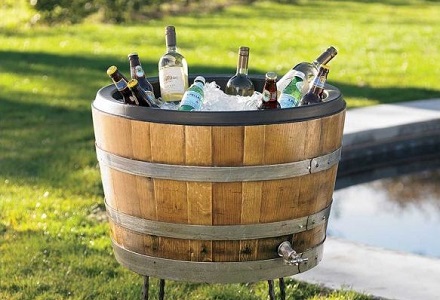 Un butoi mare de lemn, urcat pe un scaun si umplut cu gheata e numai bun pentru racit bauturile. Unde mai pui ca e si o piesa de mobilier de gradina foarte estetica! Sau, de ce nu, poti pune o lada frigorifica reala in interiorul unei lazi sau a unor paleti. Daca ii lasi pe cei mici sa le vopseasca, vei avea o adevarata opera de arta, iar admirarea ei poate fi folosita drept scuza barbatilor sa isi mai ia inca o bere.