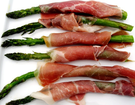 Iata una dintre cele mai rapide retete de aperitive festive pe care le poti incerca cu ocazia Craciunului sau Revelionului. Cele doua ingrediente sunt suficient de pretentioase pentru a nu fi nevoie de altele suplimentare. Prajeste sparanghelul timp de 12 minute, apoi inveleste-l in prosciutto si ai obtinut un aperitiv potrivit si pentru cei mai pretentiosi gurmanzi.