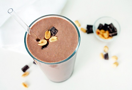 Acest shake proteic contine aproximativ 450 de calorii si 32 g proteine, asa ca ar trebui sa fii atenta ce altceva mai servesti pe timpul zilei. Are o aroma aparte datorita untului de arahide, dar iaurtul il face sa fie si foarte racoros.