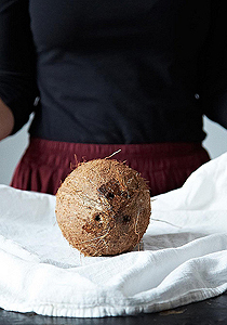 3. Inveleste nuca de cocos in prosop si izbeste-o de o suprafata dura.