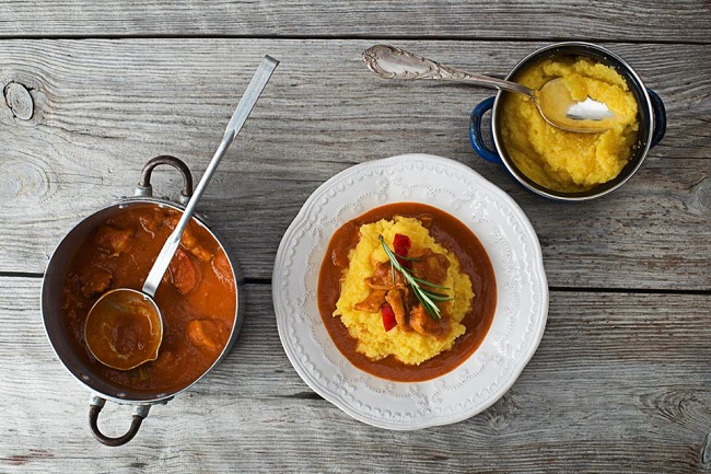 În funcție de preferințe, poți servi ostropelul de pui cu mămăligă fierbinte sau rece ori cu pâine.