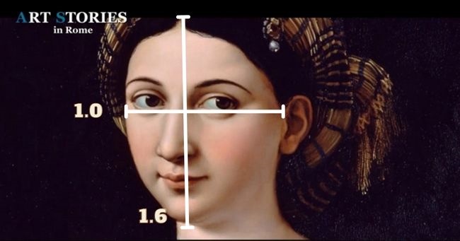 În „La Fornarina”, portretul realizat de Raphael, se poate observa că un chip în proporție divină este de 1,6 ori mai mare în lungime decât în lățime.