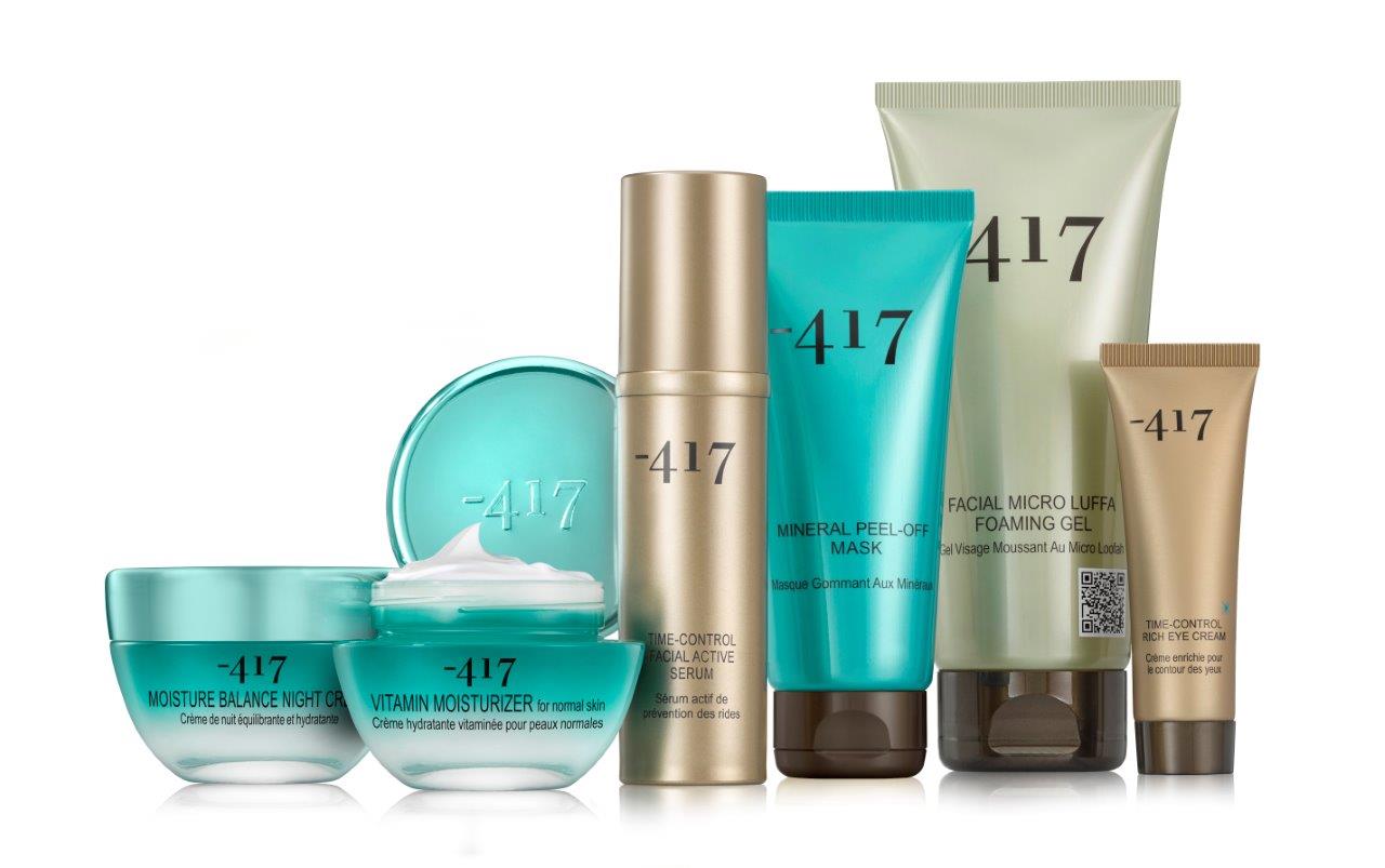 Astfel, prin procese de cercetare, expertiză profesională și înțelegere a nevoilor clienților, s-a născut gama -417, o linie unică și exclusivă de produse pentru îngrijirea pielii, ce combină vitamine energizante (A, B, E, D și F), extracte naturale din plante cu un complex bogat de minerale din apa de la Marea Moartă. Alături de nămolul Mării Moarte, cosmeticele -417 sunt un tribut adus frumuseții naturale și sănătății pielii.