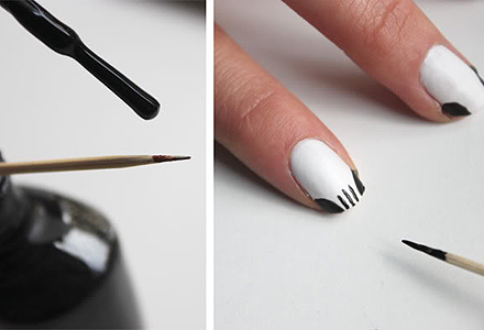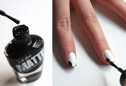 Mai intai tine la indemana o sticluta cu oja alba, una cu oja neagra, una cu lac transparent pentru unghii, o pensula subtire si cateva scobitori.