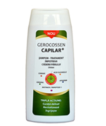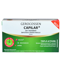 Gerocossen CAPILAR+este o gama destinata ingrijirii parului si, mai ales, un tratament revolutionar impotriva caderii acestuia. Produsele din gama Gerocossen CAPILAR+au in compozitie o serie de ingrediente active care imbunatatesc micro-circulatia sanguina la nivelul scalpului, fortifica radacina firului de par, stopeaza caderea prematura a acestuia si ii favorizeaza cresterea.