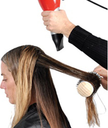 Mentinand produsul aplicat pe firul de par, foloseste o perie rotunda sau rectangulara pentru a usca parul cu foehn-ul. Acest pas va capta produsul in cuticula.