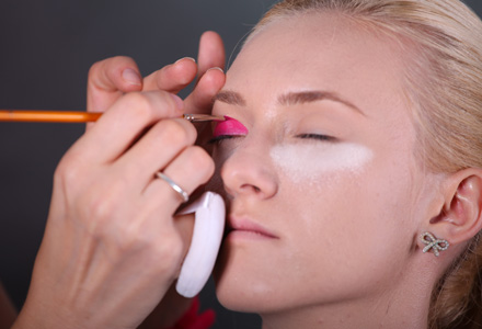 Aplicam pudra translucida sub pleoapa, pentru a evita murdarirea fondului de ten cu pigment de fard.