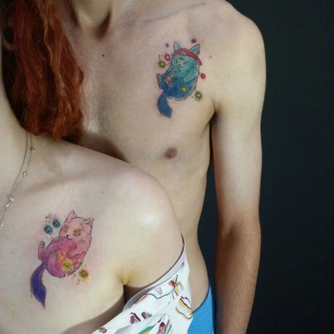 Însă poate cea mai „de suflet” manifestare a dragostei este reprezentată de modelul de tatuaj de cuplu de mai jos!