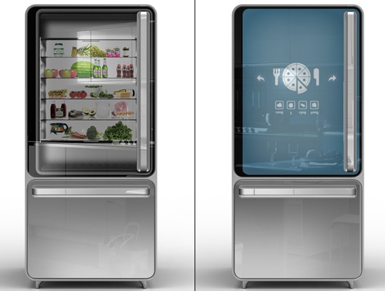 Sunt multe frigidere inteligente, insa acesta le intrece pe toate. El poate sa iti ofere o reteta pe baza a ceea ce este in frigider. Apoi te ghideaza cu instructiuni vocale! Nu trebuie decat sa introduci noile cumparaturi in frigider si in memoria lui si gata! Cum faci asta? In momentul in care inchizi usa frigiderului, aceasta se transforma intr-un ecran-interfata, care te ajuta sa comunici cu frigiderul. Nu stim daca poti comunica si wireless cu el. Ar fi tare interesant sa introduci in memoria lui lista de cumparaturi direct de pe computer sau din telefon.