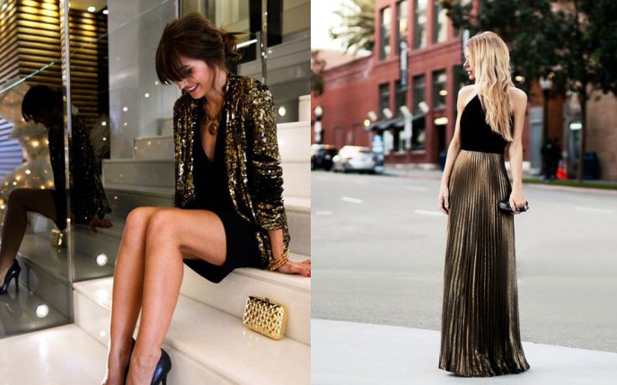20 de ținute cu negru și auriu pe care să le încerci în această iarnă