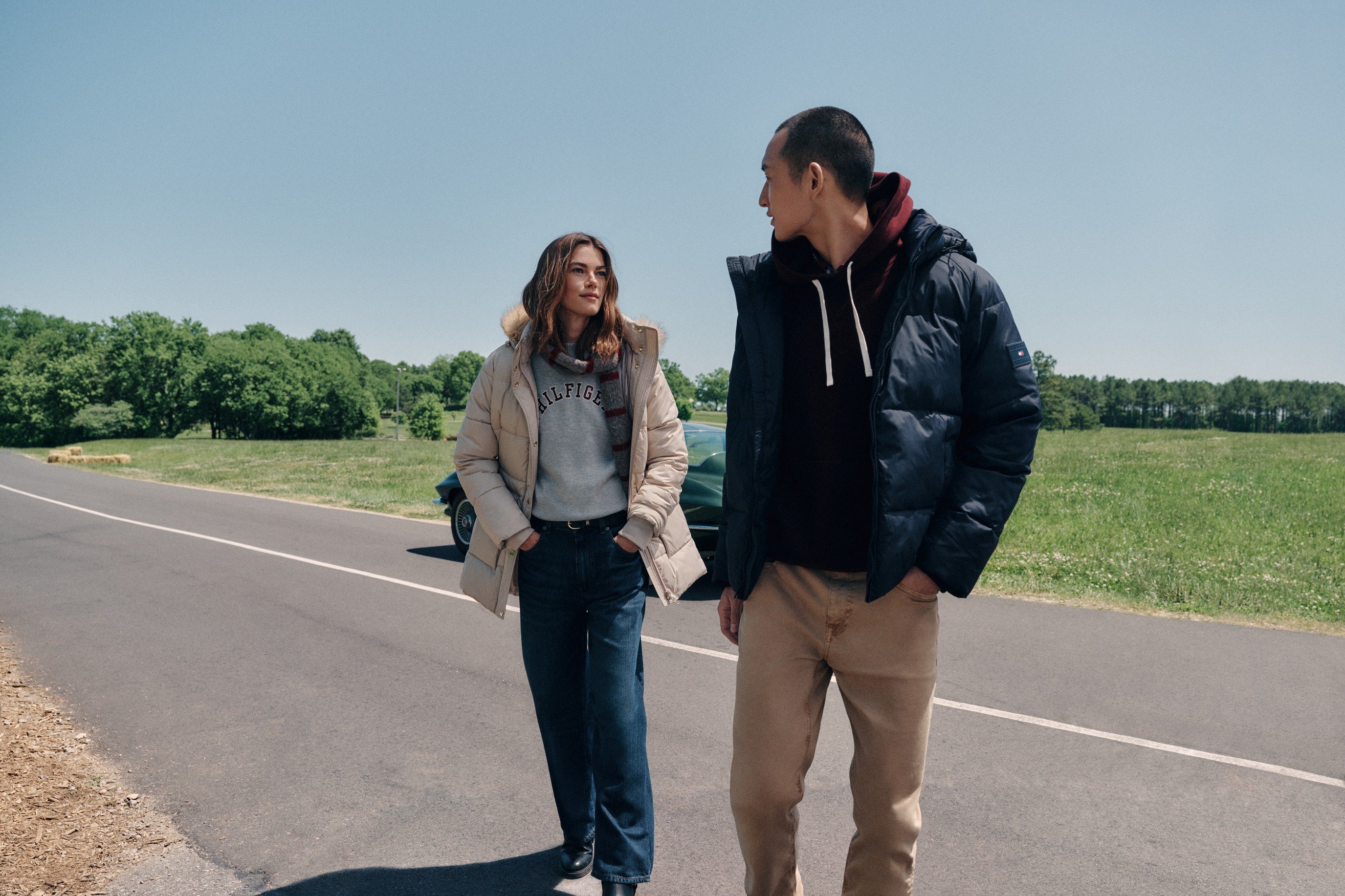 Segmentul de outerwear completează povestea printr-o selecție de paltoane, trench-uri și jachete cu linii clare și detalii subtile. Fiecare model păstrează ADN-ul clasic Tommy Hilfiger, reinterpretându-l într-o cheie modernă—de la sacouri structurate la parka matlasate ușoare, gândite pentru stratificări inteligente și pentru a înfrunta cu stil vremea schimbătoare.