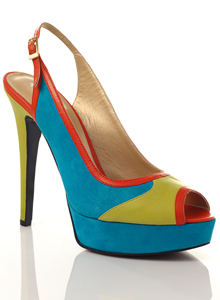 Albastrul profund reiesit parca din apele marii este asociat pe rand nuantelor tandre de roz sau tonurilor exuberante de verde si oranj ce amintesc de florile orientale. Violetul orhideelor este declinat intr-un degrade care porneste de la tonurile cele mai luminoase, pentru a atinge in final un apogeu al profunzimii. Rosul intens invaluie glezna, pentru a se regasi apoi in accente inserate in platforma sandalelor, iar turcoazul si coralul trimit cu gandul la mici escapade.
