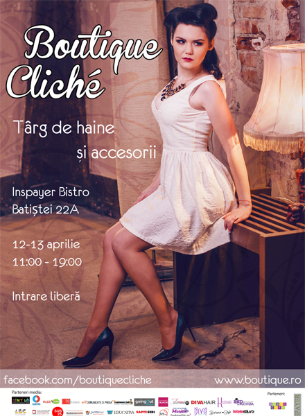 Va invitam pe 12 si 13 aprilie in Inspayer Batistei la a 5-a editie a targului de haine si accesorii, Boutique Cliche. Traditiile romanesti spun ca de Paste trebuie sa purtam ceva nou, asa ca va asteptam intre orele 11 si 19 sa va innoiti!