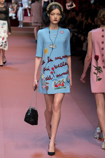 Daca in sezonul trecut designerii Dolce&Gabbana au evocat subtil valorile familiale inspirate de traditiile siciliene, pentru toamna 2015, Stefano si Domenico nu au lasat loc interpretarilor si au celebrat figura materna printr-o colectie feminina si clasica, unde motivele inspirate de arta naiva si traditiile mediteraneene au primit o interpretare couture, pe catwalk-ul Saptamanii Modei de la Milano.