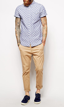 Pantalonii chino, denumiti astfel datorita tesaturii, sunt de departe cele mai versatile piese vestimentare din garderoba masculina. Mai eleganti si mai lejeri decat pantalonii slim, pantalonii chino pot fi purtati atat in tinute de zi, cat si la ocazii formale. Acestia sunt confundati deseori cu pantalonii khaki, pentru ca intr-adevar, sunt destul de asemanatori, insa spre deosebire de cei khaki, disponibili intr-o singura nuanta, pantalonii chino se gasesc intr-o gama variata de culori, sunt realizati din bumbac 100% si nu au pense. Asociaza-i cu camasi, tricouri, blazere, pantofi, tenisi sau chiar si cu sandale sandale, atunci cand rulezi pantalonii pe glezne.