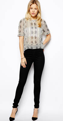 De asemenea, poti crea rapid o tinuta eleganta cu ajutorul jeansilor conici negri, cu un top sau o bluza cat mai simpla, intr-o nuanta neutra, accesorizata cu un colier statement si pantofi stiletto.