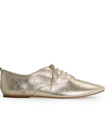Dupa ce au fost introdusi in moda in Marea Britanie, in jurul anilor 1800, pantofii Oxford au devenit incaltamintea casual preferata atat de femei, cat si de barbati. Succesul lor rasunator, atat pe catwalk cat si in viata de zi cu zi, face din pantofii Oxford piese de neratat, care te ajuta sa faci cu stil tranzitia intre sezonul de iarna si cel de primavara 2014. Desi vei fi tentata sa alegi un model clasic, maro sau negru, iti propunem o varianta originala: invaluiti in pelicula aurie.