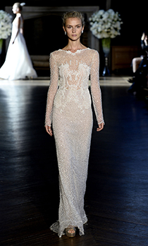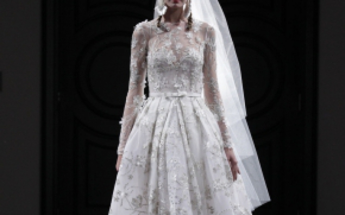 O trena care sa danseze in urma ta si un bob cu volum vor completa acest ansamblu! Alege dimensiuni midi ale rochiei de mireasa cu maneci lungi, ca in acest model Marchesa, si vei atinge farmecul perfectiunii divelor de altadata!