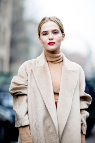 Dacă vrei să fii elegantă, apelează la un palton, un top de mătase și pantaloni slim bej! Îți garantăm că nimeni nu va fi mai sofisticată decât tine.