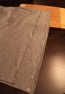 Pentru a transforma esarfa, ataseaza-i capse la ambele capete, astfel incat sa se poata inchide asemenea unei bluze.