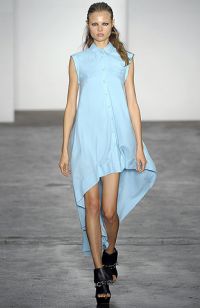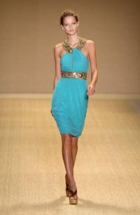 Albastrul a colorat in acesta vara rochite scurte, vaporoase, salopete din satin, pantaloni cu talie inalta din tafta, sarafane cambrate pe corp sau fuste in clos de matase.