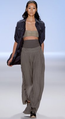 | Pantalonii largi, lungi pana la glezna au facut si ei furori pe podium. Desi pe podium arata foarte bine, trebuie sa retii ca este nevoie de un simt innascut al modei pentru a-i purta fara sa arati ciudat. De asemenea, daca nu esti o fire curajoasa, careia sa ii placa sa se joace cu hainele, este mai bine sa optezi pentru un alt mod de asortare. Pantalonii pana la glezna sunt potriviti femeilor inalte sau cu o silueta echilibrata, deoarece pot avea efect optic de "fragmentare" a siluetei.