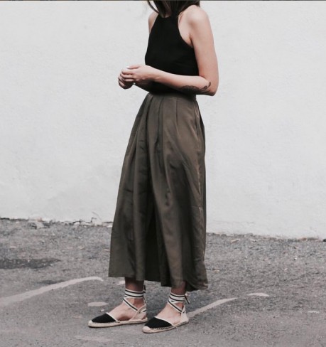 Dar espadrilele fac casă bună și cu ținutele simple, în nuanțe neutre. Apelează la o pereche de culottes și la un maiou simplu!