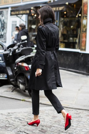 Nu în ultimul rând, recunoaște forța de atracție a unui outfit all black. Așa cum am spart regulile purtând alb iarna, putem la fel de bine să apelăm la negru în sezoanele calde. Pantofii roșii cu toc mic sunt tot ceea ce ai nevoie!