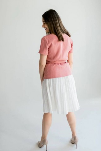 Imaginează-ți o femeie frumoasă plimbându-se la pas printr-un parc, cu mișcările gingașe subliniate de o rochie ce atrage toate privirile. Extrem de confortabilă și cu un aer boem încântător, rochia din in prespălat Emmelinea are mâneci bufante și lungime midi, cu un bust în clini ce subliniază silueta. Inul reglează temperatura corpului, deci nu trebuie să îți faci griji, această rochie îți va ține mereu companie.