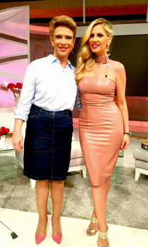 Andreea Banica este una dintre primele vedete de pe plaiurile mioritice care a indraznit sa imbrace o rochie roz, din latex, piesa vestimentara de care una dintre cele mai controversate dive internationale, Kim Kardashian, nu se desparte nici in perioada de sarcina.