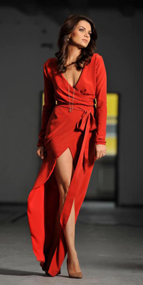 O rochie lunga, fara umar, care pe deaspura mai are si un slit destul de amplu, este cu adevarat expresia rafinamentului si senzualitatii, conferind purtatoarei o silueta de-a dreptul sculpturala. Malvina Cservenschi nu s-a putut abtine sa nu imbrace o rochie Rhea Costa neagra, marcata in talie cu un cordon, care nu facea decat sa ii sublinieze formele.