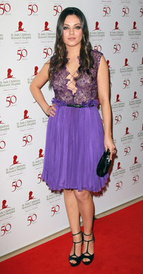 Mila Kunis, recent declarata una dintre cele mai sexi femei in viata, a avut un look extrem de feminin si senzual atunci cand a ales o rochie violet scurta. Top-ul foarte decoltat din dantela a fost deliciul privitorilor iar forma rochiei violet i-a pus in evidenta silueta armonioasa.