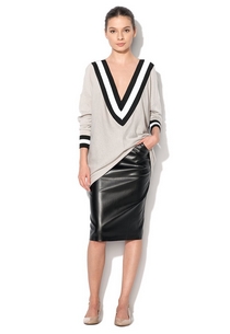 Puloverul oversized inglobeaza toate cele 3 caracteristici pe care ar trebui sa la aiba piesa vestimentara perfecta pentru sezonul rece: este calduros, foarte chic si avantajeaza silueta. Noutatea acestui an in materie de pulovere XXL o reprezinta croiul cu decolteu cat mai amplu, in V, care alungeste vizual silueta, ajutandu-ne totodata sa compunem cele mai reusite tinute de toamna-iarna. Poate fi purtat alaturi de jeansi cu talie inalta si botine cu toc gros, dar si in combinatii smart-casual, cu fuste creion si cizme lungi.