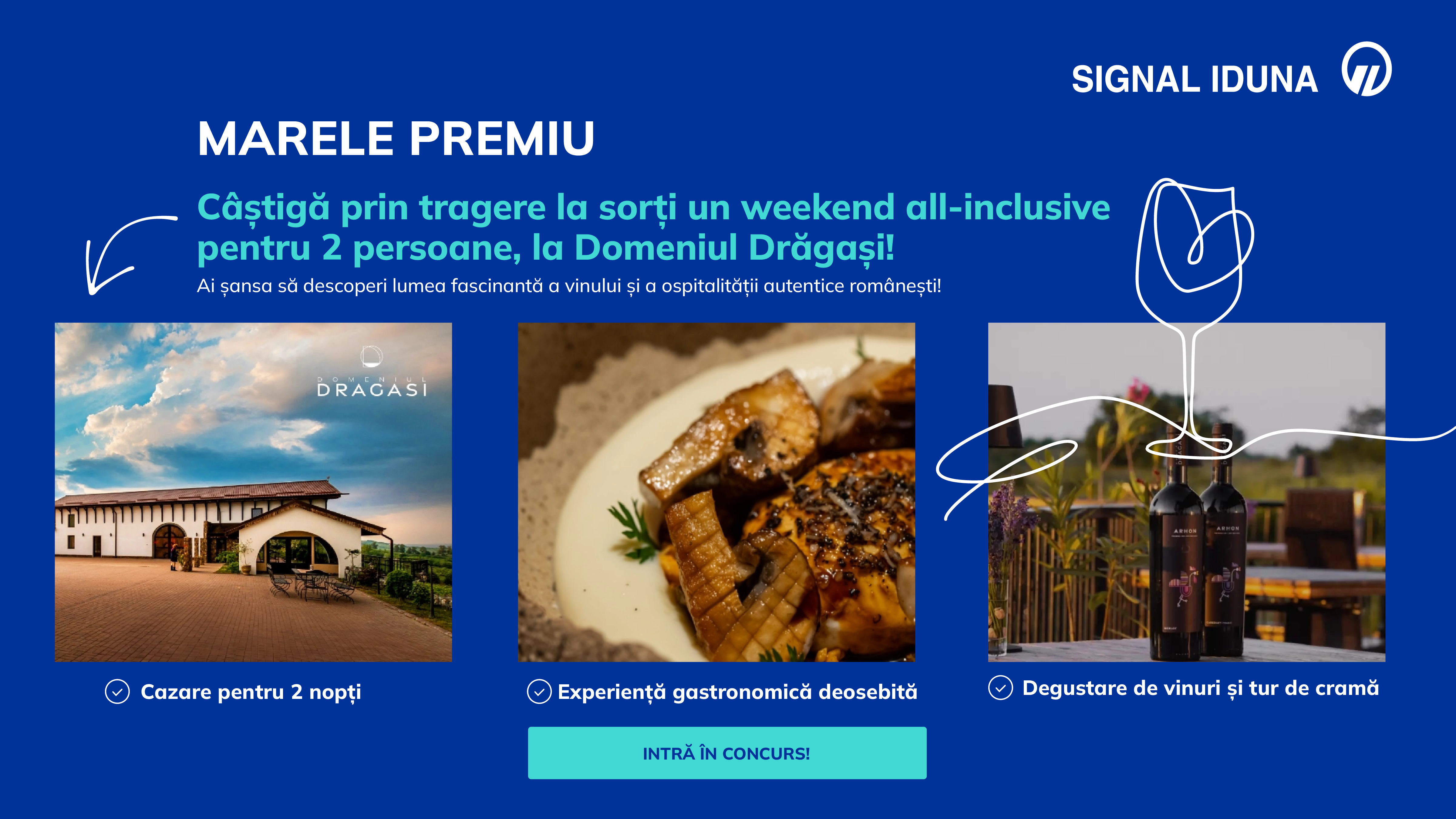 Grija și aprecierea sunt cel mai prețios cadou pentru cei dragi. SIGNAL IDUNA subliniază acest lucru printr-un concurs special pe pagina sa oficială de Facebook. Participă și intră în tragerea la sorți pentru un weekend all-inclusive alături de o persoană specială la Domeniul Drăgași, pentru a descoperi lumea fascinantă a vinului și a ospitalității autentice românești. Află mai multe detalii pe pagina de concurs SIGNAL IDUNA.
