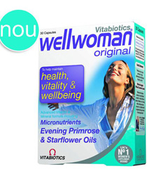 Pentru ca femeile si barbatii vor fi intotdeauna diferiti, Wellwoman este special creat pentru femei. Acest supliment contine vitamine si minerale esentiale, ce ofera sanatate, vitalitate si energie. Antioxidantii, vitamina C si extractele de citrice sunt benefice pentru cresterea imunitatii, iar extractul de balusca si primula regleaza ciclul menstrual si reduce sindromul premenstrual.