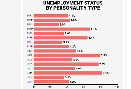 Astfel, Introvertitul Senzorial Afectiv (ISF) este cel care isi gaseste cel mai greu de lucru, dintre toate cele 16 tipuri de personalitate.