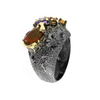 Inel realizat din argint placat cu rutheniu și aur galben de 14 karate, frumos ornamentat cu pietre de opal, citrin și ametist.