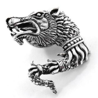 Pin din argint reprezentānd Lupul Dacic - simbol al inteligentei, dreptatii si nesupunerii. Dacii foloseau capetele de lupi si serpi pentru steagurile de lupta, sunetul produs īn timpul alergarii amplificānd rezonanta sonora.