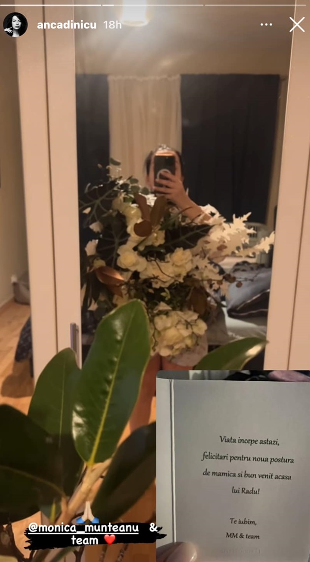 „Viața începe astăzi, felicitări pentru noua postură de mămică și bun venit acasă lui Radu. Te iubim!”, scria în mesajul primit de actriță de la Monica Munteanu.