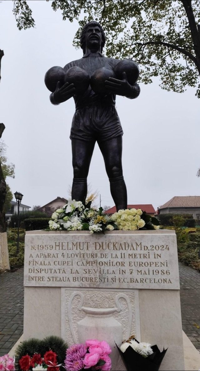La baza statuii este inscripționat numele său și data de 7 mai 1986, ziua în care România a devenit, prin el, centrul Europei fotbalistice. O zi în care Helmuth Duckadam a devenit nu doar o amintire, ci o poveste care se transmite din generație în generație.