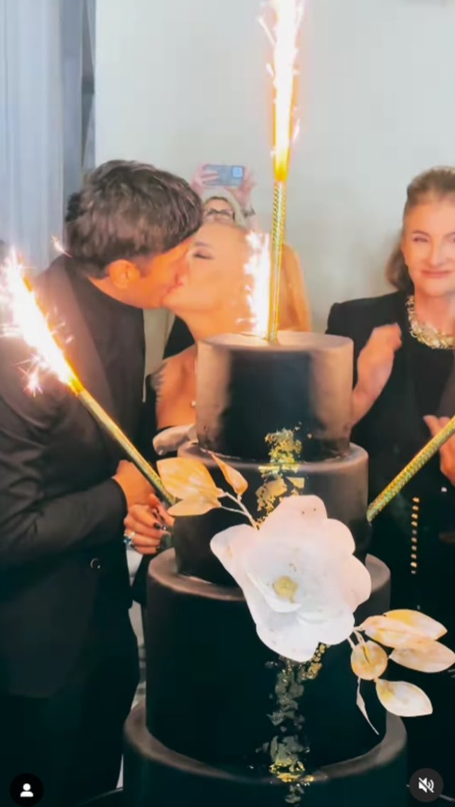 Piesa de rezistență a serii a fost, fără doar și poate, tortul impunător de patru etaje, învelit în marțipan de culoare neagră și decorat cu o imensă floare albă și foițe de aur.