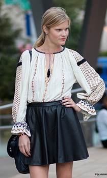 Poarta un ansamblu format dintr-o ie si elemente moderne, pentru un look actual, cu valente etno. O fusta de piele va condimenta atat de bine gratia bluzei romanesti, incat poate deveni outfitul tau semnatura. Dimpotriva, pantalonii skinny, cu print sau fara, si tocurile fabuloase, alaturi de accesorii populare, vor crea tinute cu ii care taie rasuflarea.