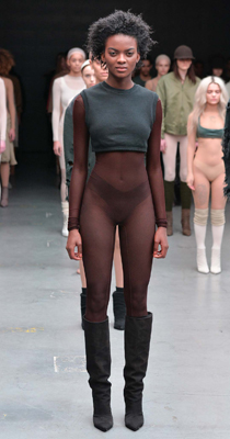 Modelele au defilat in tinute trashy cu colanti transparenti, body-uri neutre, bustiere minuscule, jachete military, geci supradimensionate sau pulovere rupte, voit nefinisate, care nu ne fac decat sa ne intrebam: oare ce a fost in capul rapperului in momentul in care a conceput aceasta linie vestimentara? Mai ales, la ce s-au gandit reprezentantii Adidas in momentul in care au vazut rezultatul final?