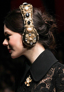 Domenico Dolce si Stefano Gabbana au avut grija sa conceapa modele care sa satisfaca pana si cele mai pretentioase gusturi in materie de moda. Castile din aur, care seamana mai degraba cu o coroana, reprezinta cireasa de tort a acestei colectii excentrice!